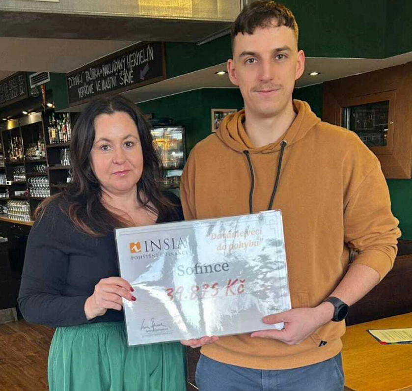 Co nám o Sofince napsala Lidmila Janoušková: „Mám báječnou vnučku Sofii, je jí 15 měsíců. Před měsícem a půl přišel pro ni a její rodiče tvrdý ortel. Leukémie. Bojuje velmi statečně, je to však léčba na dlouhou dobu. Oba rodiče se o ní 24 hodin denně starají. Pokud není Sofinka v Motole v nemocnici, je doma, to znamená, že si rodiče museli pronajmout byt v Praze, aby byla v rychlém dojezdu do nemocnice kvůli komplikacím spojeným s léčbou a vyšetřeními, kterých podstupuje stále hodně. Jinak Sofinka s rodiči bydlí v Krkonoších. Vybrané finanční prostředky poslouží ke zlepšení kvality života a v boji s touto nepříznivou životní situací." Na žádost jedné z členek sítě INSIA, paní Evy Světničkové, která je zároveň ředitelkou a koordinátorkou nadačního fondu pro onkologické pacienty "Naděje pro Tebe", jsme je propojili se Sofinčinou maminkou, která jí nabídla podporu přes tuto organizaci, ta nabídku přijala a paní Eva si tak Sofinku vzala pod svá křídla.
