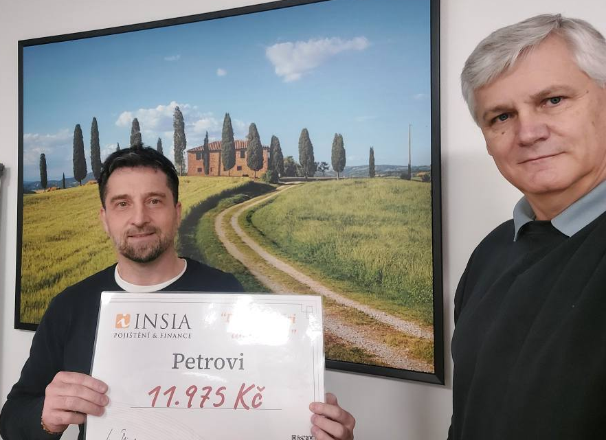Částku ve výši 31 350 Kč předala panu Petrovi Sokolíkovi paní Jana Urbanová.