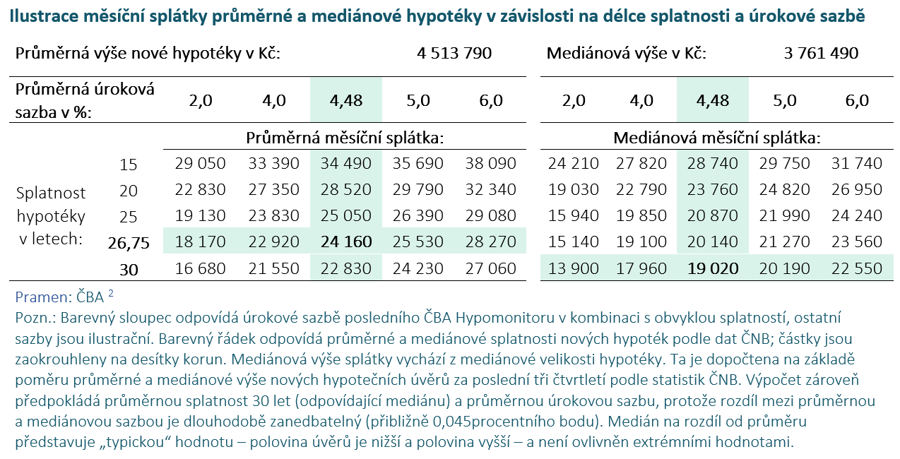 Dopady na průměrnou lednovou hypoteční splátku okolo 24,2 tisíc Kč, ovšem s mediánem u 19 tisíc