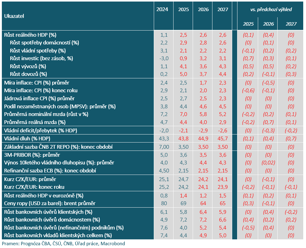 - Výhled na silnou spotřebu domácností, i když relativně konzervativní – podpořená vyšším růstem reálných mezd a stále vysokou mírou úspor.