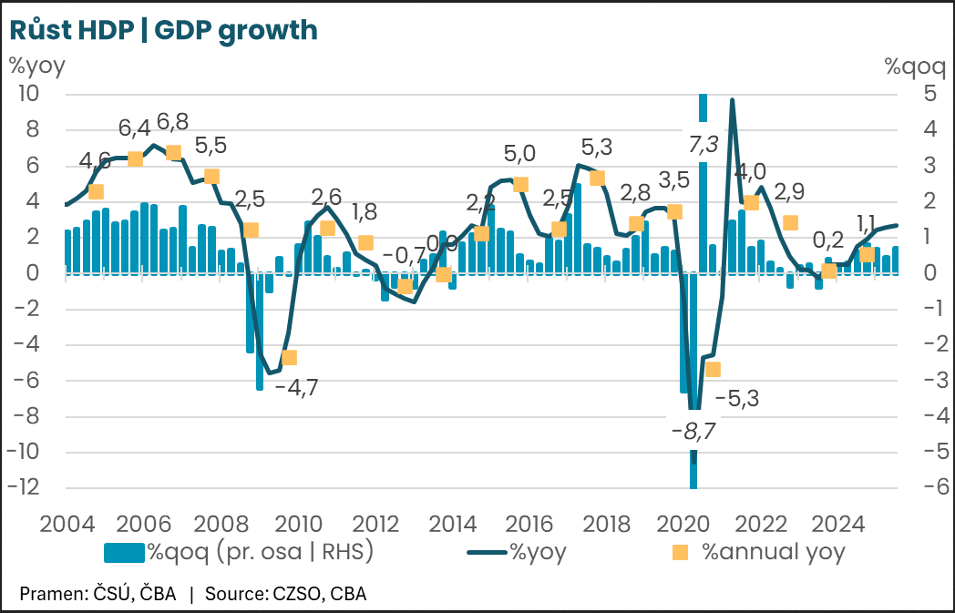 ČBA Prognóza, které počítaly s růstem ekonomiky v letošním roce o 2,1 %. Překvapivě silný růst HDP vybízí k očekávání pokračování této solidní trajektorie, kde největší překážkou budou pokračující strukturální výzvy v průmyslovém odvětví.