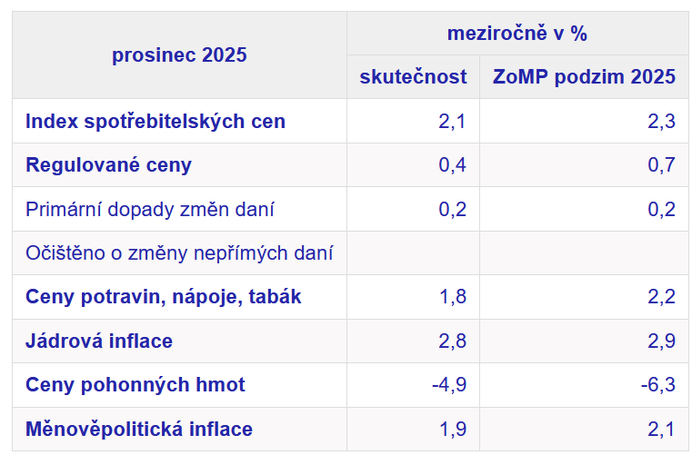 Komentář ČNB ke zveřejněným údajům o vývoji inflace v prosinci 2025