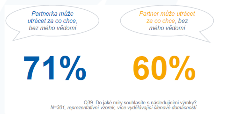 Ženy však podle výsledků průzkumu nejsou ve finančních otázkách stejně benevolentní jako jejich partneři. Zhruba 40 procent z nich chce přesně vědět, kde a za co jejich muž utrácí peníze. Podle psycholožky Kornélie Ďuríkové ze slovenské neziskové organizace Liga za duševné zdravie to souvisí s tradičními genderovými rolemi: „Muži jsou vychováváni k tomu, aby zabezpečili rodinu. Pro mnohé tam jejich úloha končí a o hospodaření s penězi v domácnosti se už tolik nezajímají. Ženy jsou zase často považovány za rozvážnější a opatrnější při nakládání s financemi. Svědčí to však i o tom, že se v rodinách možná nedokážeme o financích bavit úplně otevřeně.“